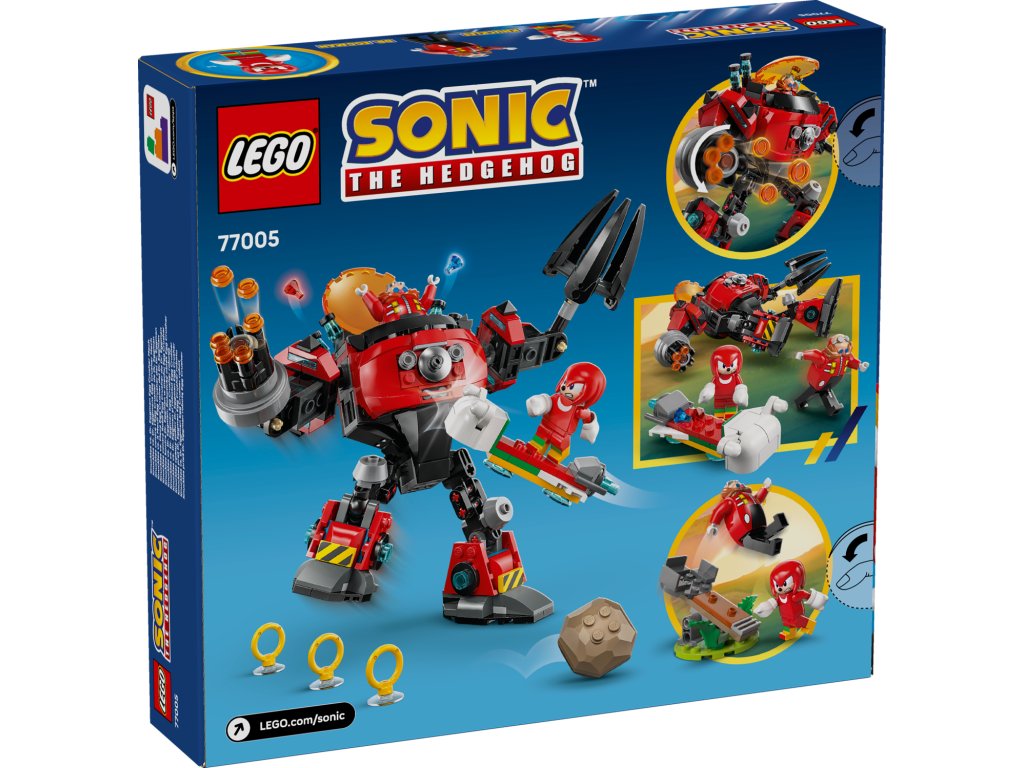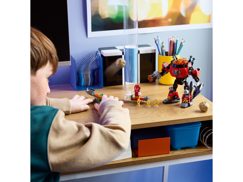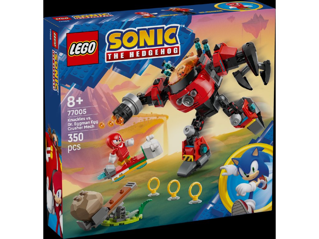 - Stavebnice se Sonicem – Potěšte děti od 8 let a fanoušky videoherní stavebnicí Knuckles vs. Dr. Eggman: Robotický oblek Egg Crusher s řadou možností hraní a 2 ikonickými postavami, které inspirují vymýšlení zábavných příběhů