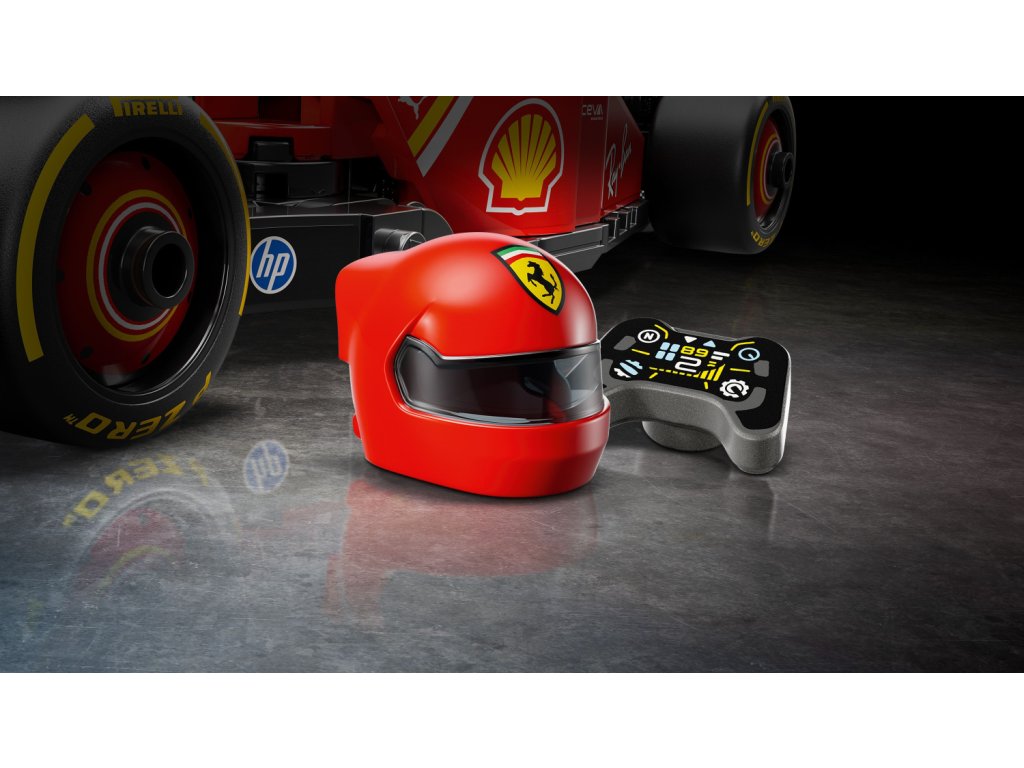 Tento model vozu F1 má kokpit, který lze otevřít zvednutím svatozáře, zadní křídlo, rovnoběžníkovou nápravu, polepy sponzorů a širší zadní pneumatiky s nápisem „Pirelli“. Součástí závodního auta F1 je také minifigurka jezdce v outfitu Ferrari s okřídlenou helmou, kterou můžete umístit do kokpitu a šlápnout na plyn.