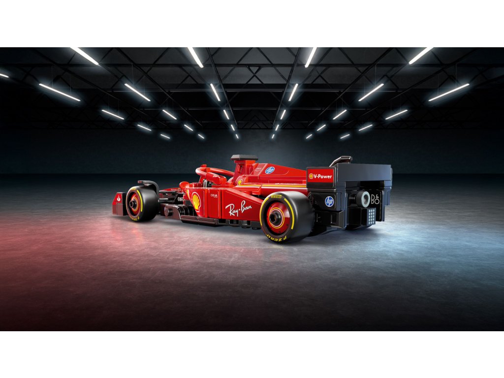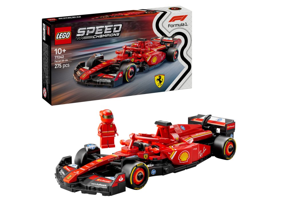 - Model auta Ferrari F1® pro děti – Kluci a holky od 10 let a fanoušci Ferrari si postaví, vystaví a zazávodí s autem LEGO® Speed Champions Ferrari SF-24 F1 s řidičem