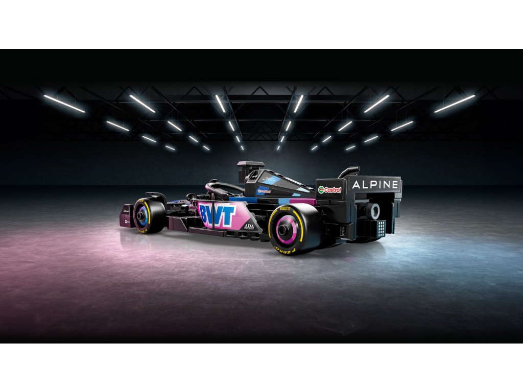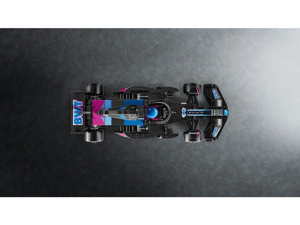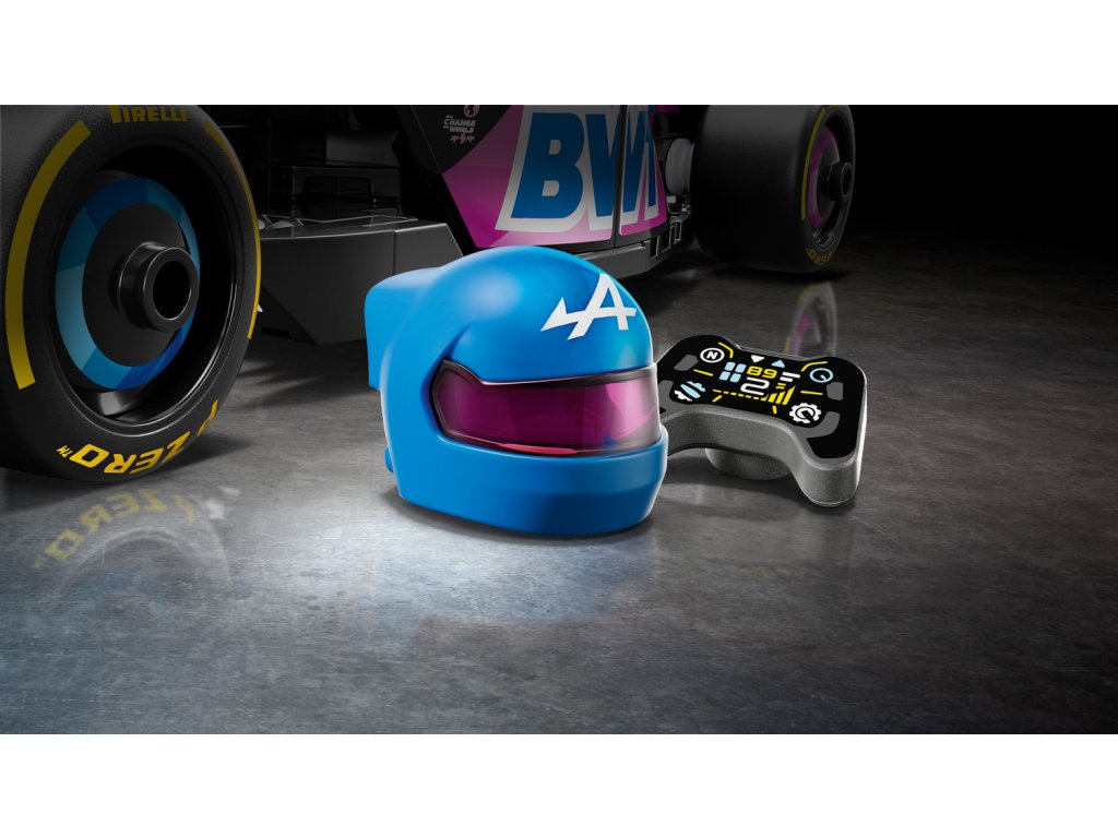 Tento model vozu F1 má kokpit, který lze otevřít zvednutím svatozáře, zadní křídlo, rovnoběžníkovou nápravu, polepy sponzorů a širší zadní pneumatiky s nápisem „Pirelli“. Součástí závodního auta je také minifigurka jezdce v outfitu Alpine s okřídlenou helmou, kterou můžete umístit do kokpitu.