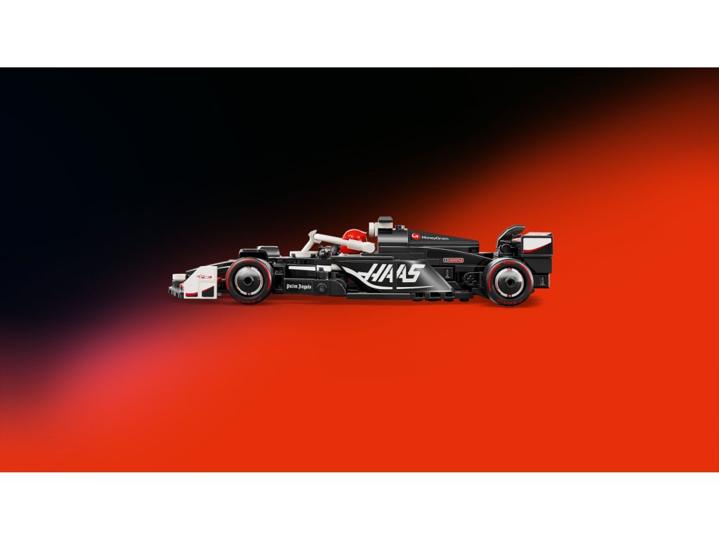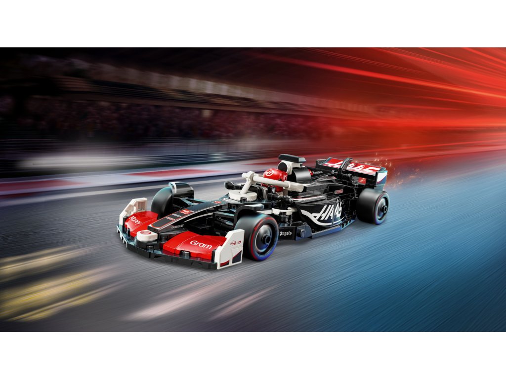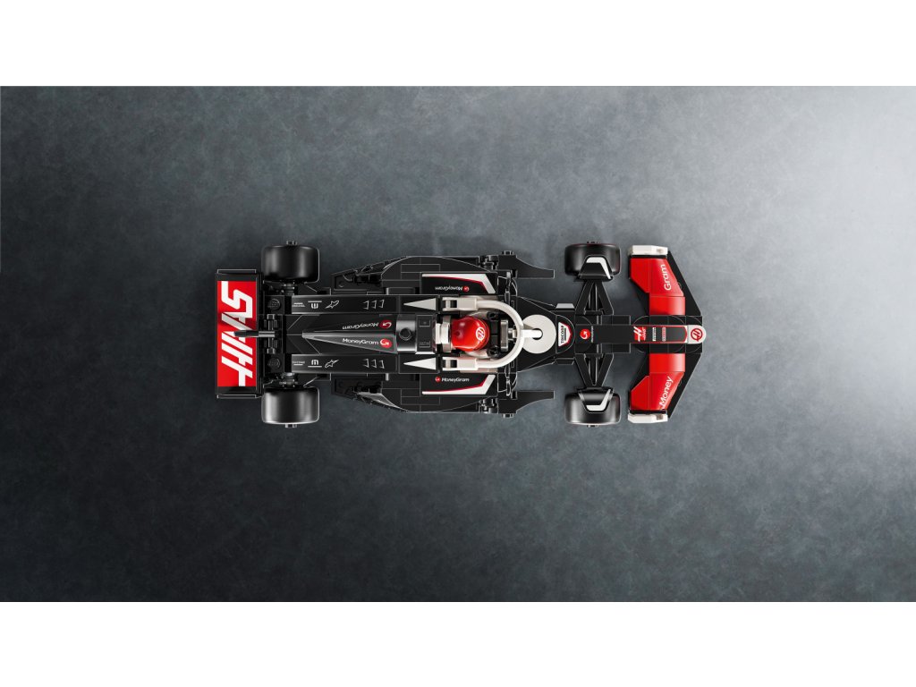 Tento model vozu F1 má kokpit, který lze otevřít zvednutím svatozáře, zadní křídlo, rovnoběžníkovou nápravu, polepy sponzorů a širší zadní pneumatiky s nápisem „Pirelli“. Součástí závodního auta F1 je také minifigurka jezdce v outfitu MoneyGram Haas F1 Team s okřídlenou helmou, kterou můžete umístit do kokpitu.