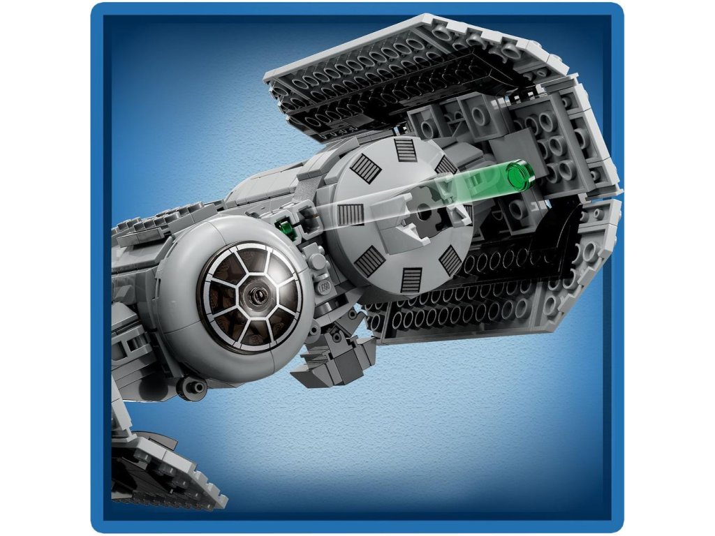 - Sestaven pro boj – Bombardér TIE je vybaven otevíracím kokpitem pro minifigurku, přihrádkou pro 4 torpéda (stavebnice obsahuje 6 sestavitelných torpéd), která lze shodit, a 2 vystřelovači