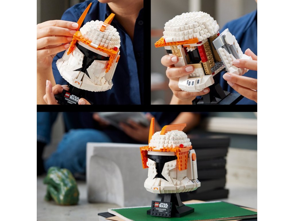 - Určeno na výstavku – Připomeňte si scény ze seriálu Star Wars: Klonové války s helmou klonovaného velitele Codyho, kterou si můžete vystavit na podstavci z kostek s potištěnou cedulkou