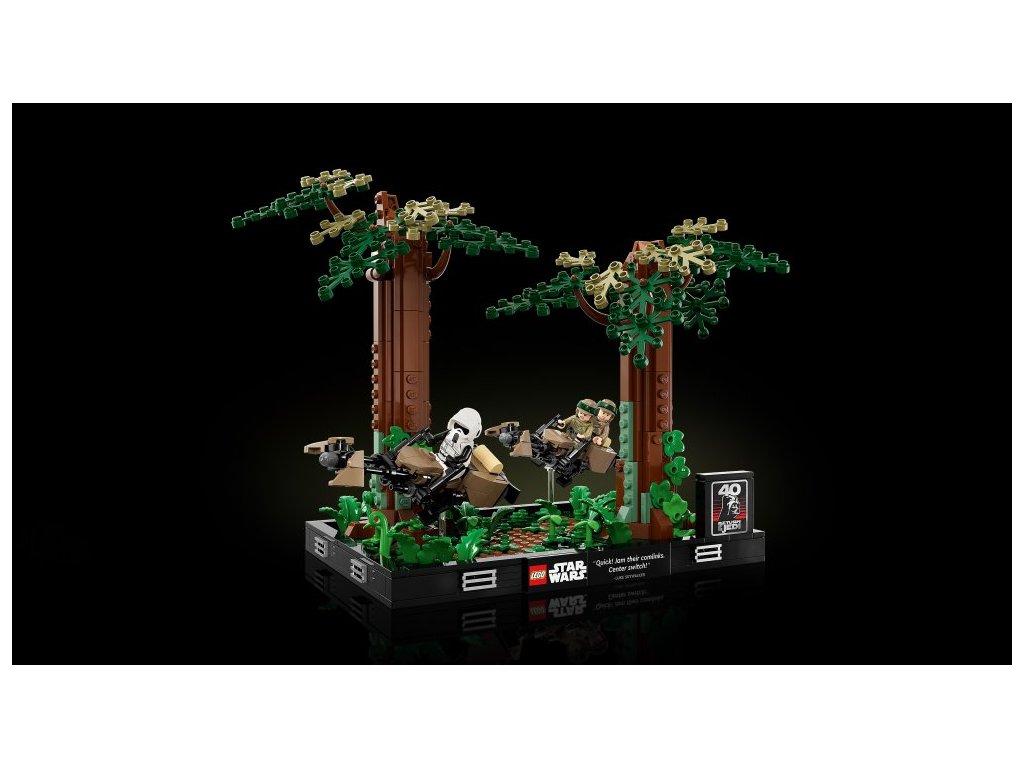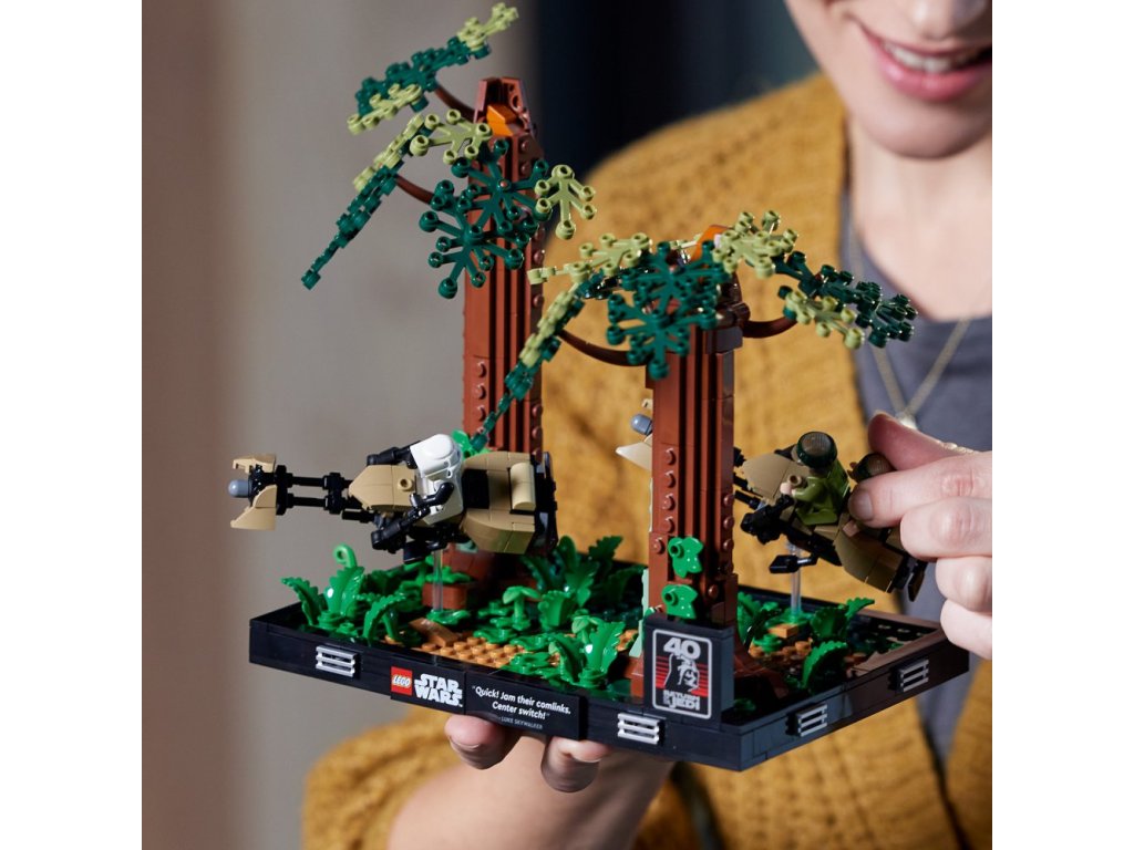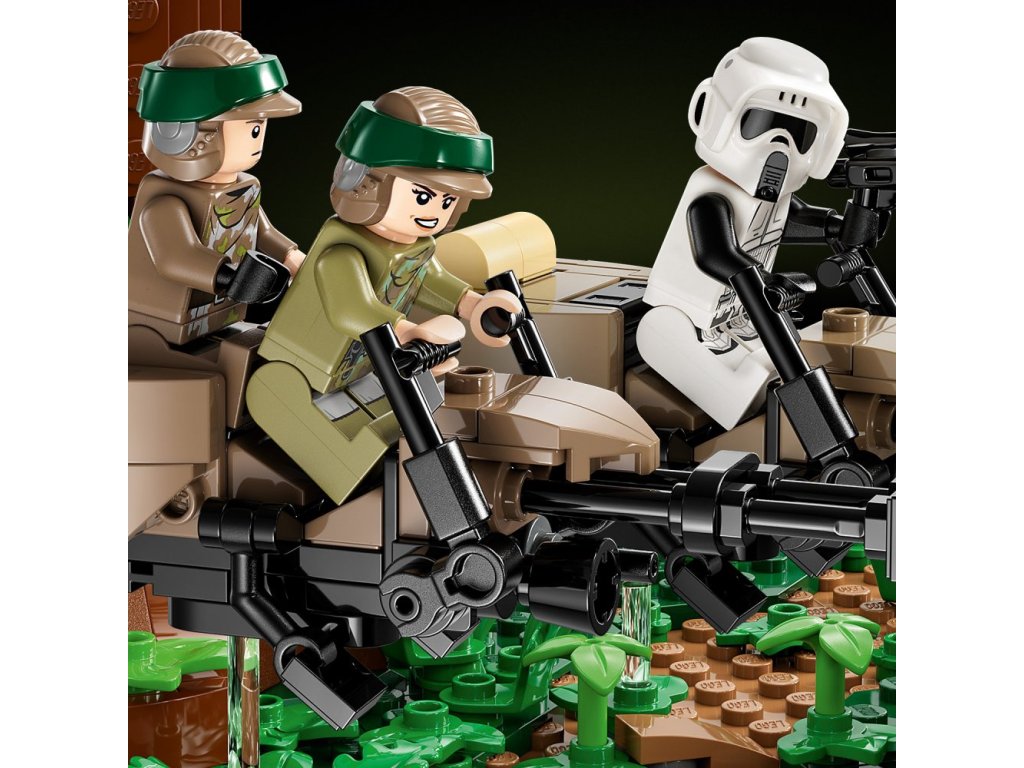 - Detailní Honička spídrů na planetě Endor™ – diorama (75353) – Vytvořte dynamický záznam ikonické honičky spídrů v lesích na planetě Endor z filmu Star Wars: Návrat Jediho