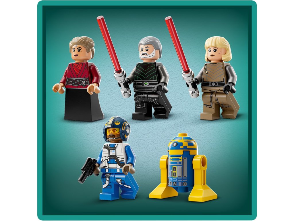 - 4 minifigurky LEGO® a figurka LEGO droida – Baylan Skoll a Shin Hati ve světelnými meči, Morgan Elsbeth, kapitán Porter s blasterovou pistolí a astro-droid Nové republiky