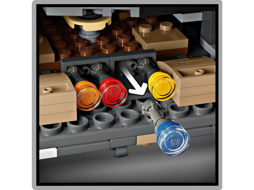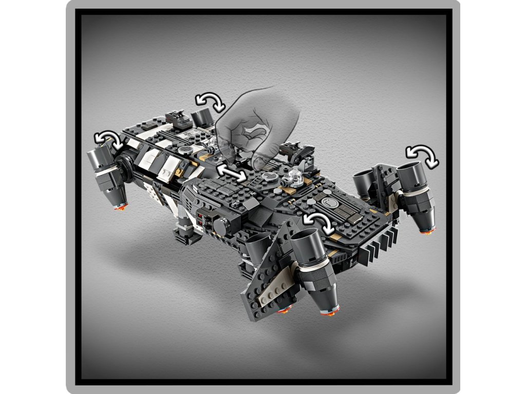- Autentické detaily – Kokpit, prostor se sedadly pro 4 minifigurky LEGO®, otáčecí motory pro přistání, start nebo let, 2 vystřelovače a 2 otočné hlavně, každá s 2 vystřelovači