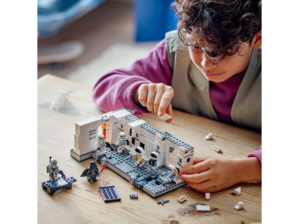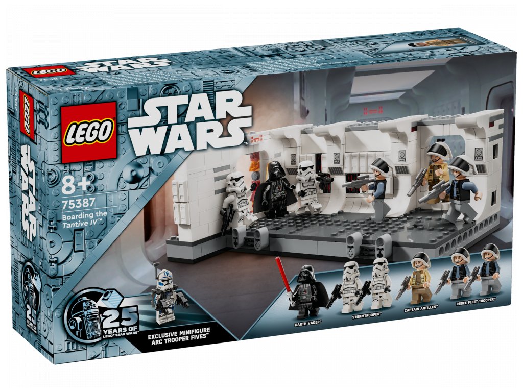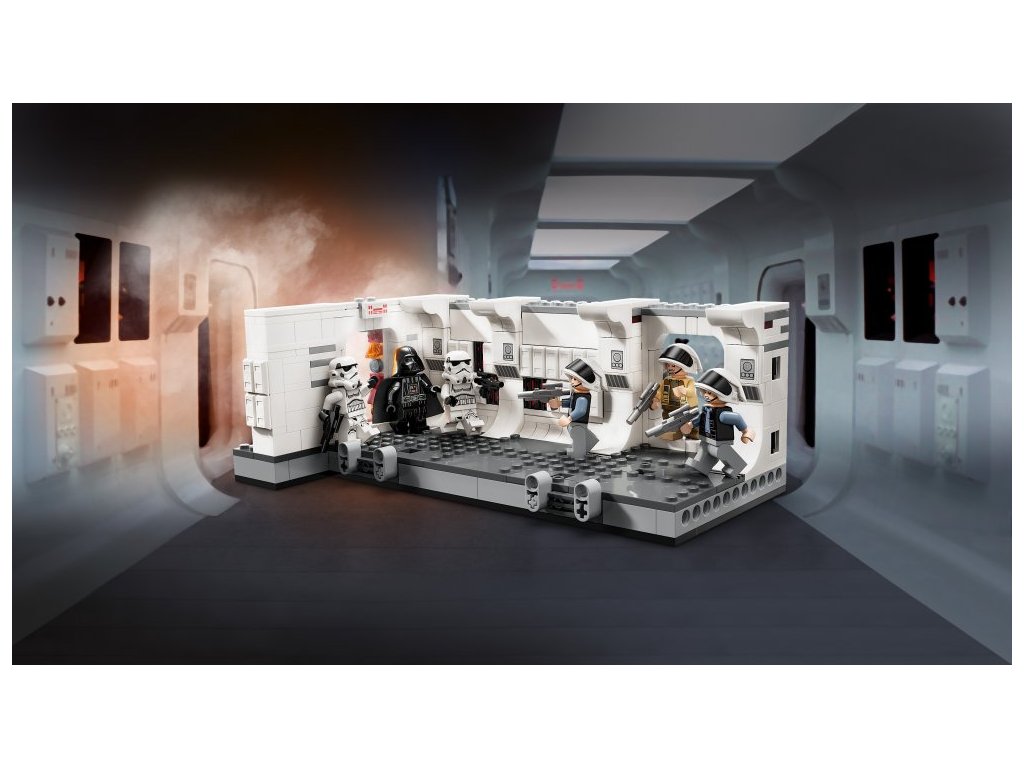 Znovu prožijte scénu, ve které se Darth Vader se Stormtroopery nalodí na vesmírnou loď Tantive IV z filmu Star Wars: Nová naděje, s touto stavebnicí (75387) pro děti od 8 let. Součástí je propracovaná chodba na palubě Tantive IV, kde se Stormtroopeři Dartha Vadera utkají s vojáky flotily povstalců kapitána Antilly. Nechybí páčky, pomocí kterých „rozrazíte“ vstupní dveře a během bitvy porazíte postavy. Spojovače umožní stavitelům připojit další stavebnici 75387 (prodává se samostatně) a rozšířit tak chodbu.