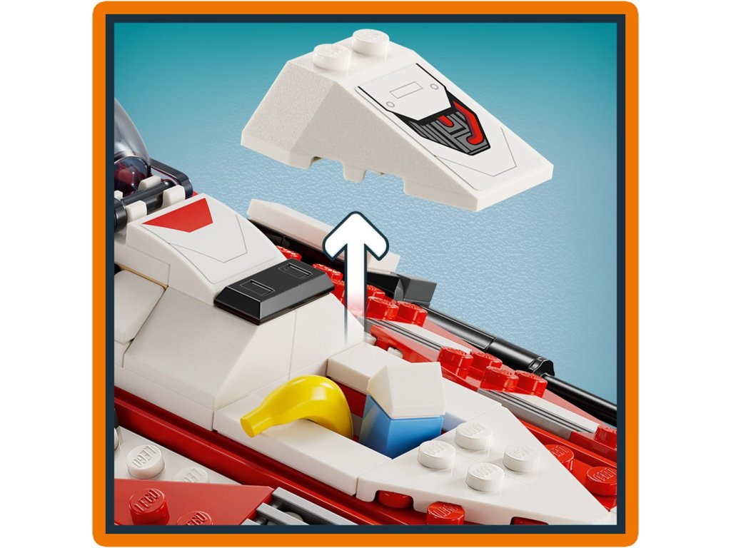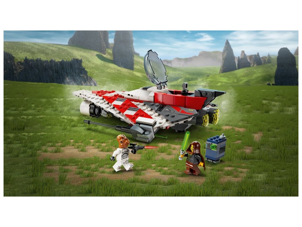 - Stíhačka Jedie ze světa Star Wars™ – Vesmírná loď z kostek LEGO® obsahuje otevírací kokpit s úložným prostorem, 2 pružinové vystřelovače, držáky na světelné meče a zatahovací podvozek