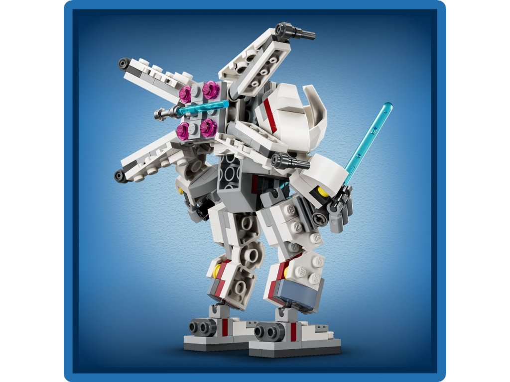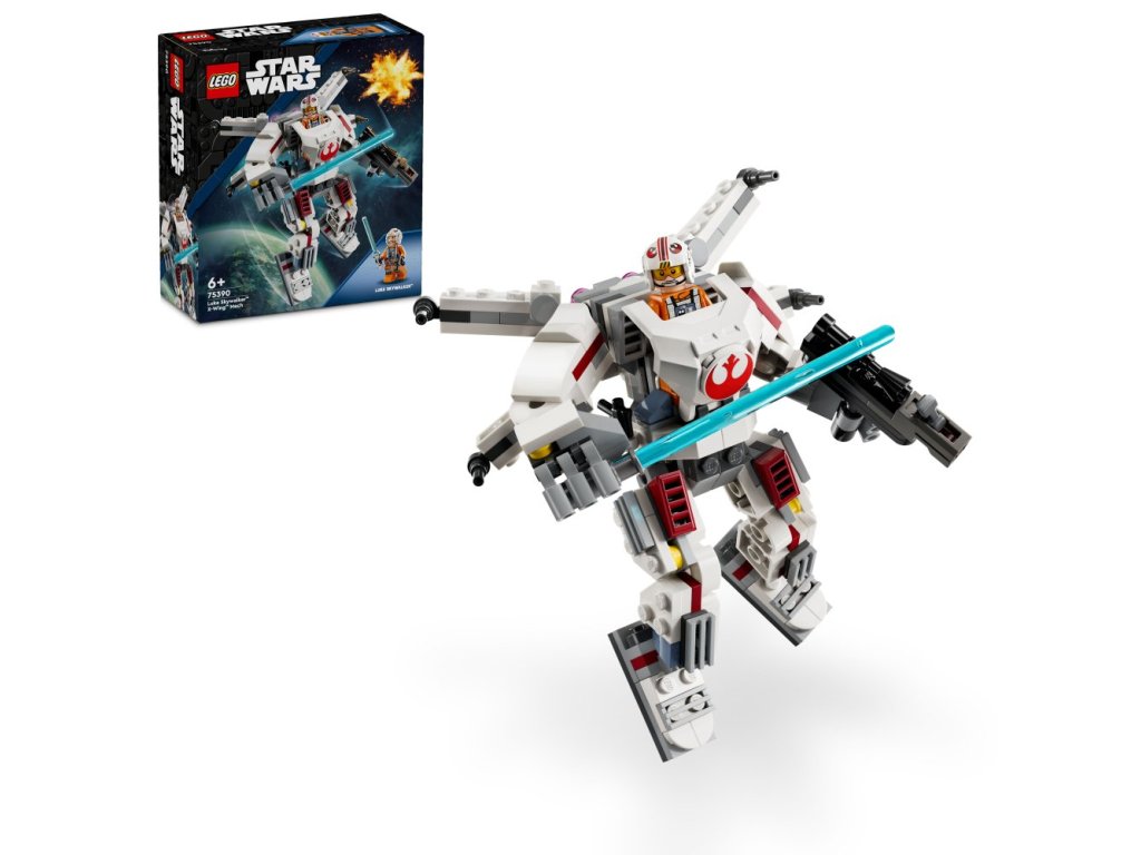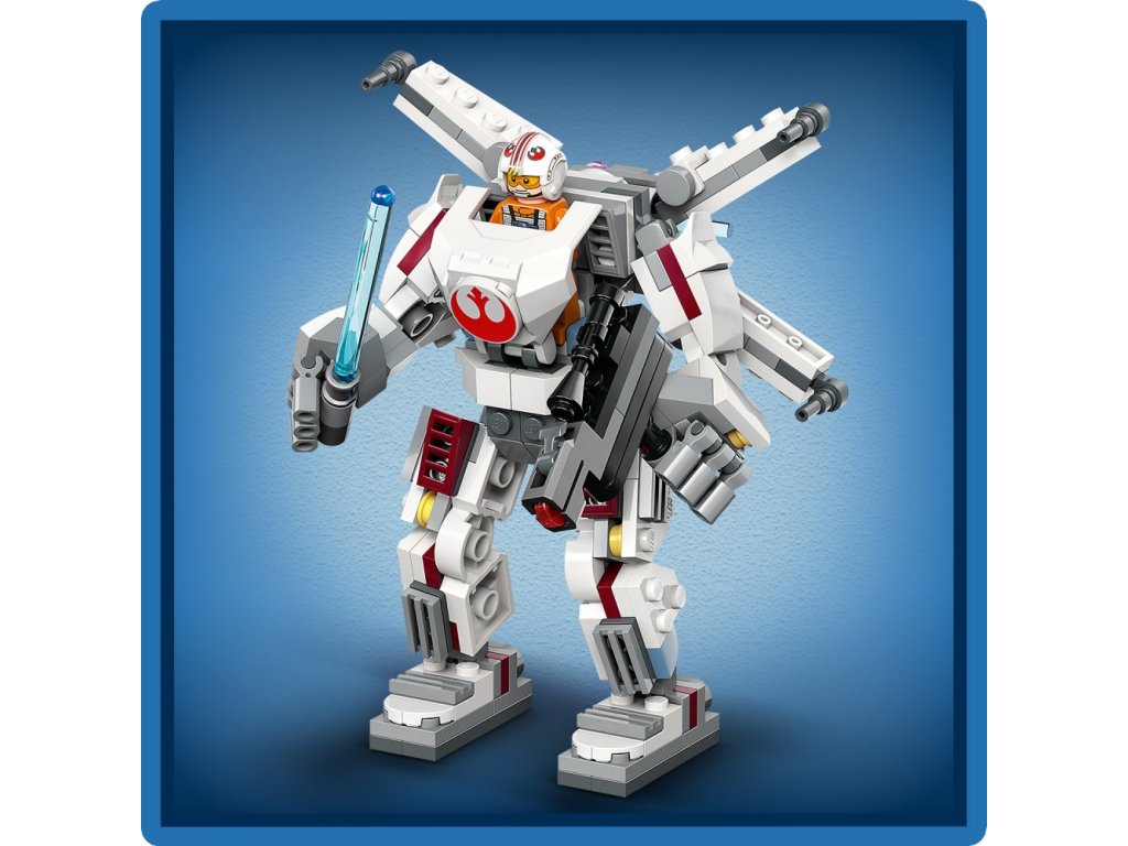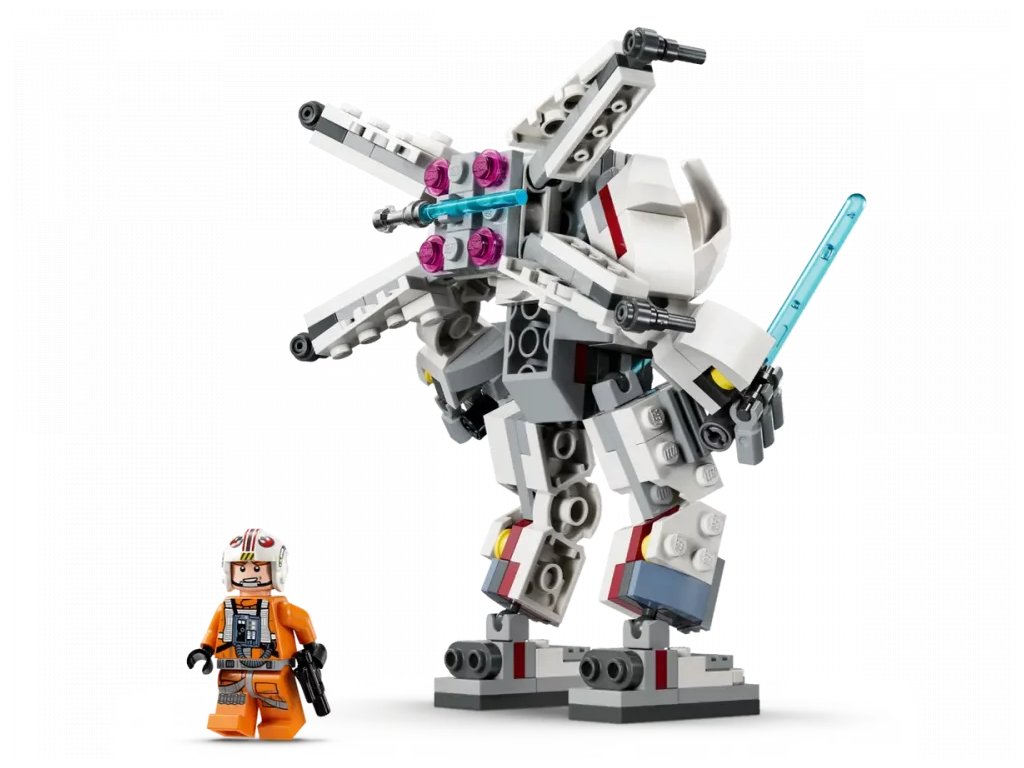 - Sestavitelný robotický oblek X-wing LEGO® – Robotický oblek má pohyblivé ruce, paže, nohy a chodidla, otevírací kokpit pro minifigurku a upravitelný jetpack v podobě X-wingu, a navíc velký světelný meč a vystřelovací blaster