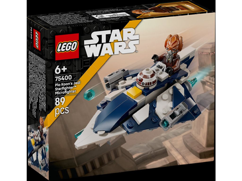 - Vůbec první model jediské mikrostíhačky LEGO® Star Wars™ – Tato miniaturní jediská stíhačka v barvách Plo Koona má kokpit pro minifigurku LEGO a 2 vystřelovače