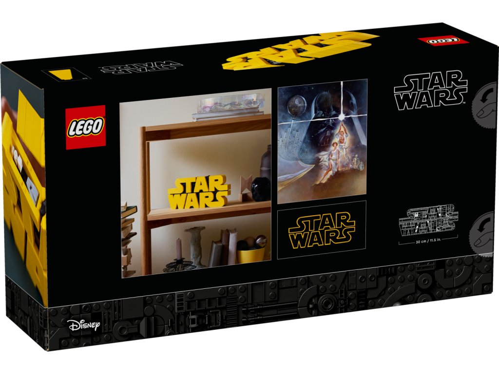 - Vychutnejte si detaily – Toto logo Star Wars™ obsahuje klasické greeblingové detaily LEGO® v černých částech mezi žlutými písmeny a v písmenu „T“ nápisu Star Wars najdete malé překvapení