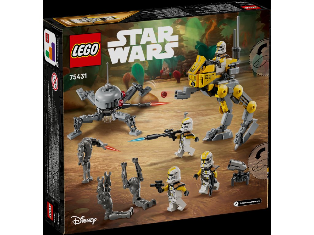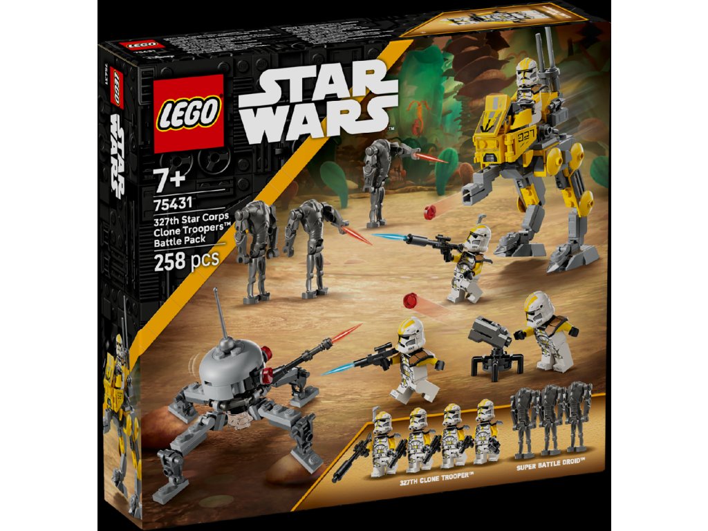 Postav četu klonovaných vojáků z 327. hvězdného sboru a vydejte se do boje proti super bitevním droidům s tímto bitevním balíčkem LEGO® Star Wars: Pomsta Sithů (75431) pro děti. Balíček obsahuje 4 minifigurky LEGO Star Wars™ klonovaných vojáků v ikonických uniformách 327. hvězdného sboru a 3 figurky LEGO super bitevních droidů. Tato stavebnice Star Wars obsahuje také chodce AT-RT s kokpitem pro minifigurku LEGO, vystřelovač a úložný prostor pro blaster a dalekohled a vystřelovací věž pro klonované vojáky. Super bitevní droidi mají k dispozici pavoučího droida, který děti inspiruje k velkolepým bitvám.