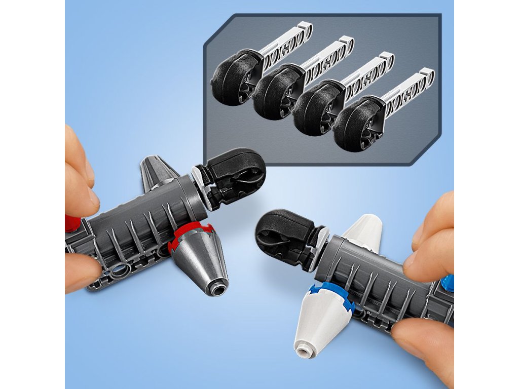 - Děti se mohou těšit na hodiny stavění a zábavy při soubojích s přáteli a rodinou o to, kdo jako první zasáhne terč svého soupeře.
