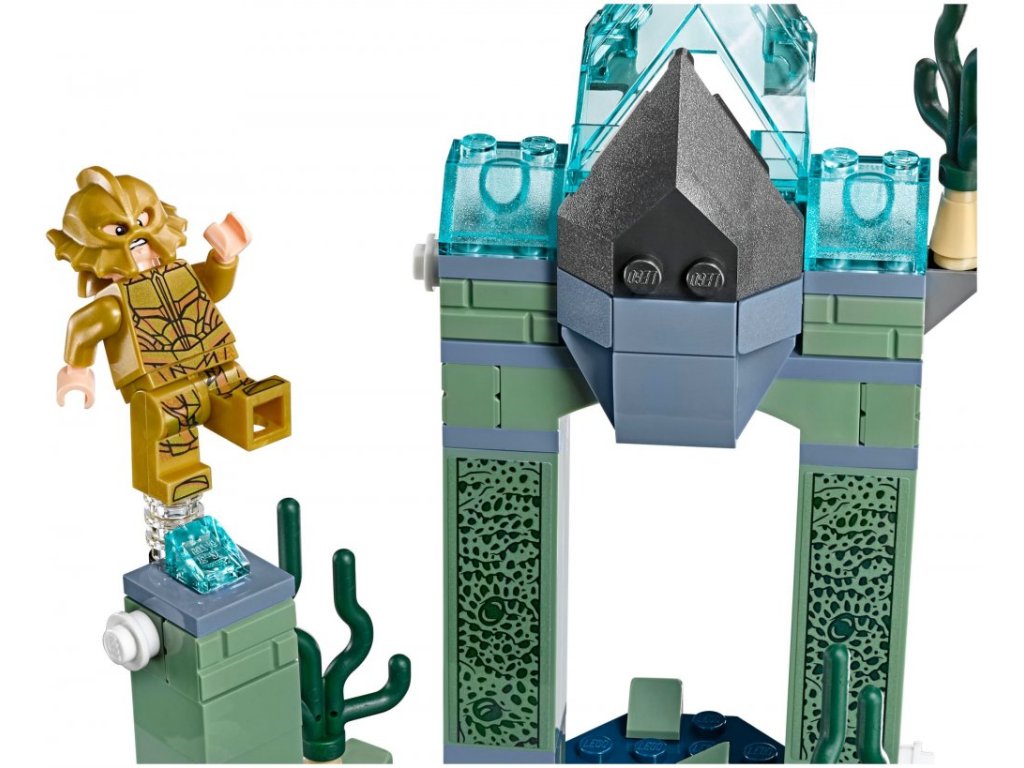 - Obsahuje 4 minifigurky: Aquaman™ (v šupinovém brnění, které je novinkou pro srpen 2017), Parademon™ a dvojice atlantských strážců.