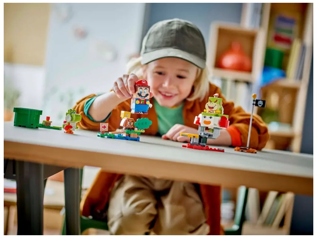 - Dobrodružství s interaktivním LEGO® Mariem – S tímto setem LEGO® Super Mario™ se děti pustí do bitvy proti Bowserovi Jr. a převezmou jeho Junior Clown Car