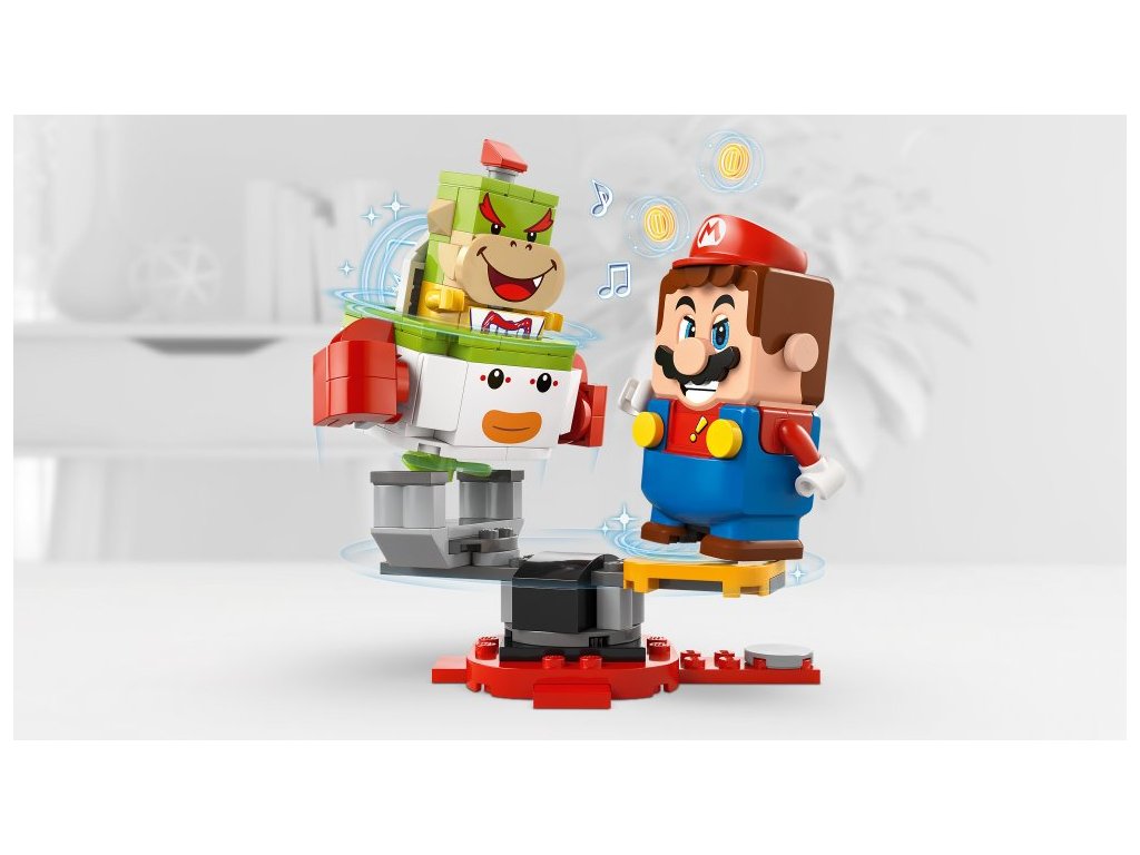 - Bitva o Junior Clown Car – Pomozte LEGO® Mariovi setřást Bowsera Jr. z balanční plošiny a ven z jeho Junior Clown Car, porazte ho, naskočte do vozidla a ujeďte pryč