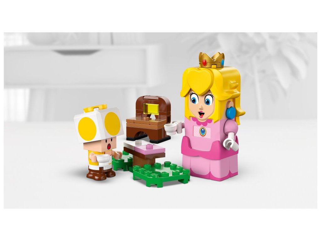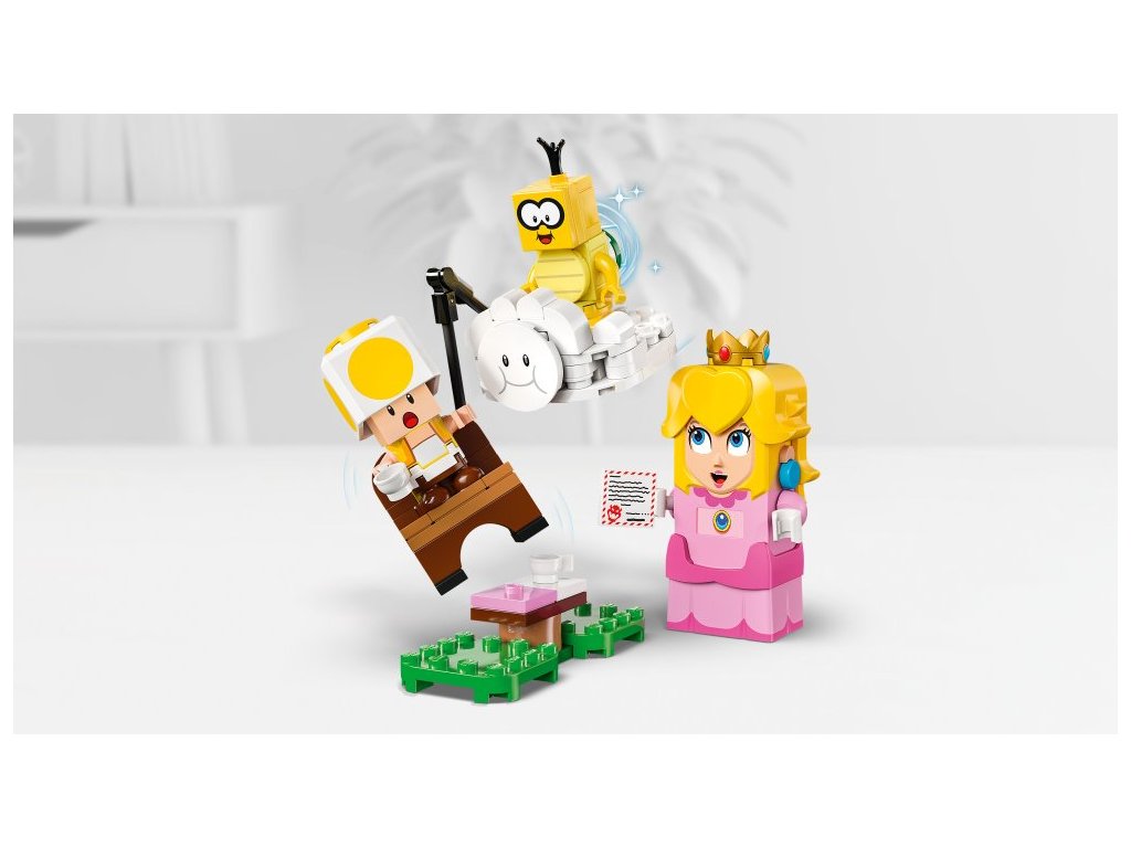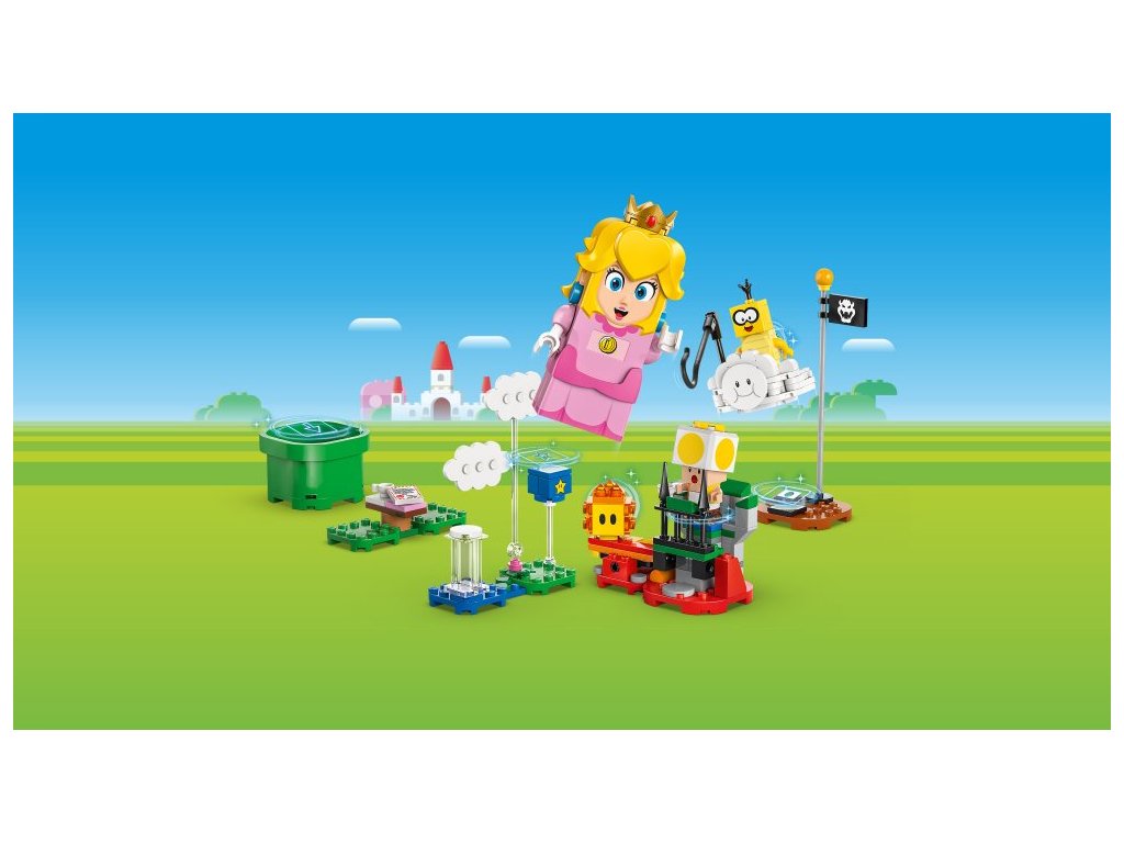 - Princeznovská stavebnice pro zábavná dobrodružství s interaktivní LEGO® Peach™ – Udělejte si piknikový čajový dýchánek s LEGO Peach a pomozte jí létat na Lakitově obláčku při záchraně Žlutého Toada