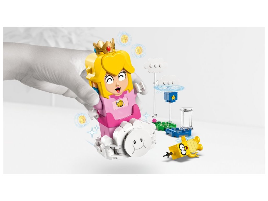 - Zábavný obláček – Pomozte LEGO® Peach™ předvádět smyčky a salta na obláčku a získejte další digitální mince. Lakitu může pomocí obláčku také zaháknout piknikové křeslo a polapit Žlutého Toada