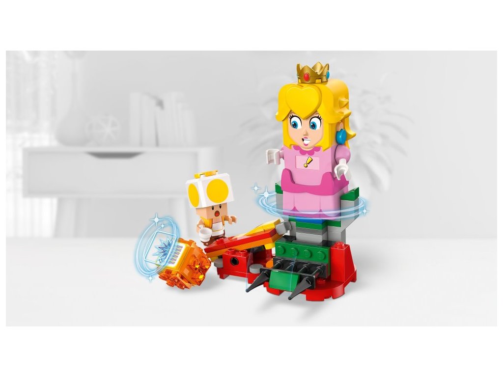 - 4 figurky LEGO® Super Mario™ – Tento set LEGO Nintendo® obsahuje interaktivní figurku LEGO® Peach™ a navíc Lakita, Žlutého Toada a Lava Bubble
