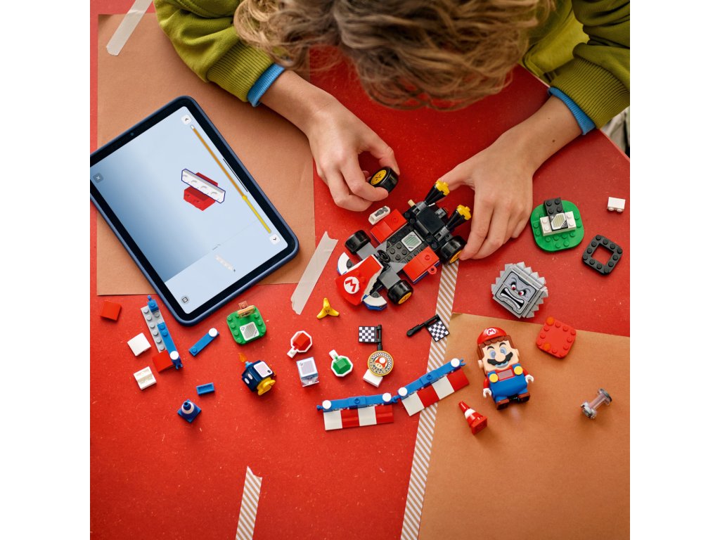 - Interaktivní hračka – Závoďte na motokáře Standard Kart s LEGO® Mariem, získejte digitální odměny z krabice Item Box, porazte Bob-omba a Thwompa, sledujte, jak LEGO Mario™ reaguje na zelené a červené destičky LEGO a mnoho dalšího