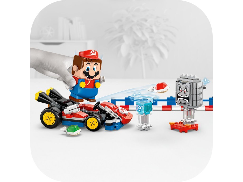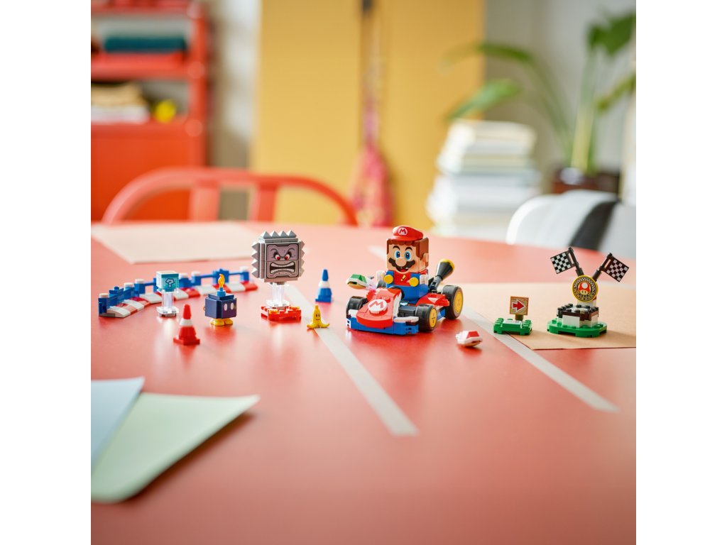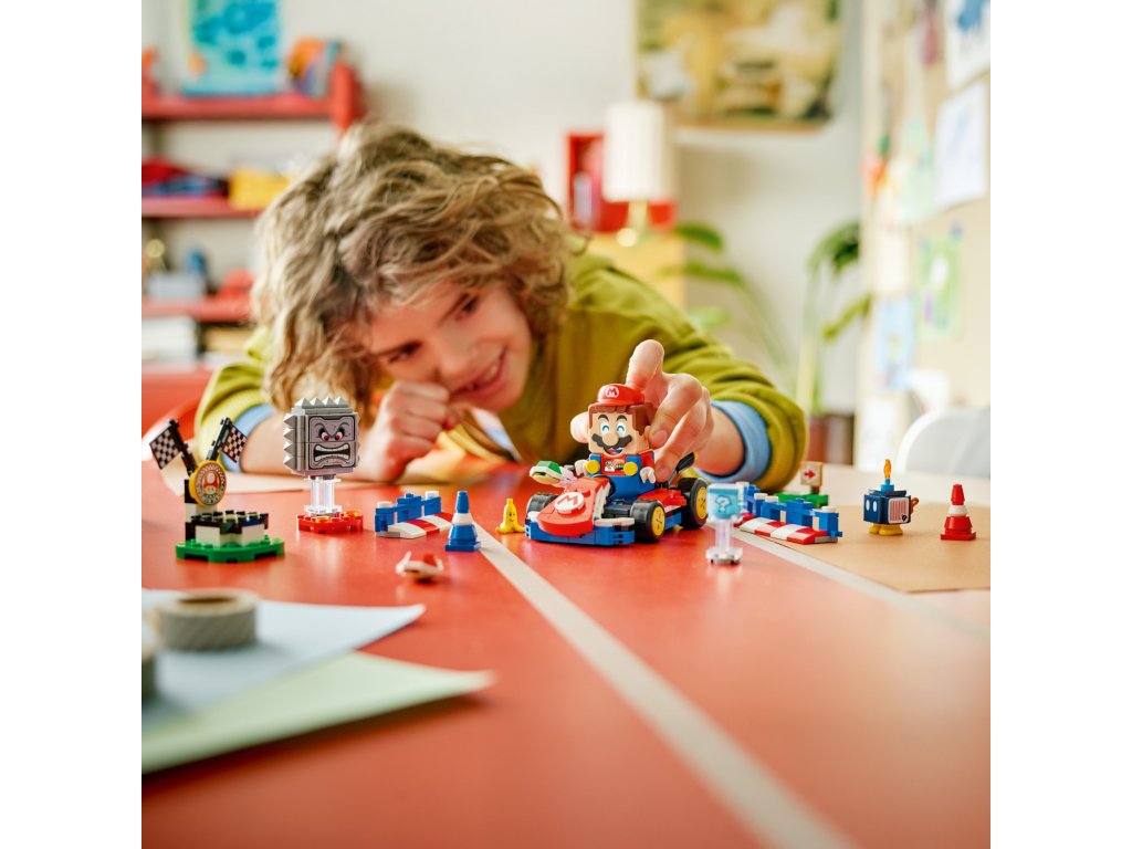 Děti si s touto stavebnicí Mario Kart™ (72043) z kostek vytvoří vlastní závodní dráhu a společně s LEGO® Mariem v motokáře Standard Kart se vydají na interaktivní závody. Fantastická stavebnice LEGO® Super Mario™ pro kluky, holky a gamery od 7 let obsahuje interaktivní figurku LEGO Maria a Standard Kart s funkcí driftování a střílení krunýřů pro zábavné závodění a hraní. Součástí závodní dráhy je také startovní dráha, připojitelné bariéry, dopravní kužely a kruh vítězů. Řiďte Standard Kart s LEGO Mariem a aktivujte zvuky a vizuální efekty Mario Kart, získejte digitální odměny z krabice Item Box, porazte Bob-omba a Thwompa a sledujte, jak LEGO Mario reaguje na zelené a červené destičky LEGO.
