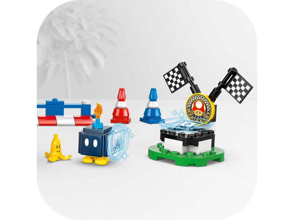 - Nekonečné herní možnosti – Prozkoumejte celou řadu stavebnic LEGO® Super Mario™: Mario Kart™ (prodávají se samostatně) a objevte další motokáry Mario Kart a postavy, se kterými můžete závodit