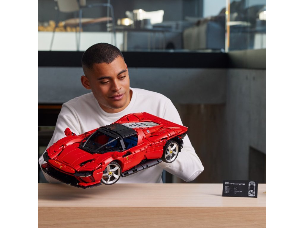 Série modelů ultimátních koncepčních automobilů od LEGO® Technic přináší působivou stavebnici pro dospělé fanoušky značky Ferrari. Vstupte do zóny soustředěného odpočinku a postavte si model vozu Ferrari Daytona SP3 v klasickém červeném provedení s chromovanými ráfky kol. Po sestavení si toto jedinečné vozidlo v měřítku 1 : 8 vystavte a obdivujte jeho ladné křivky.