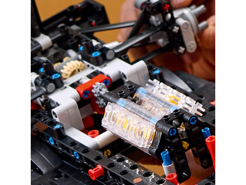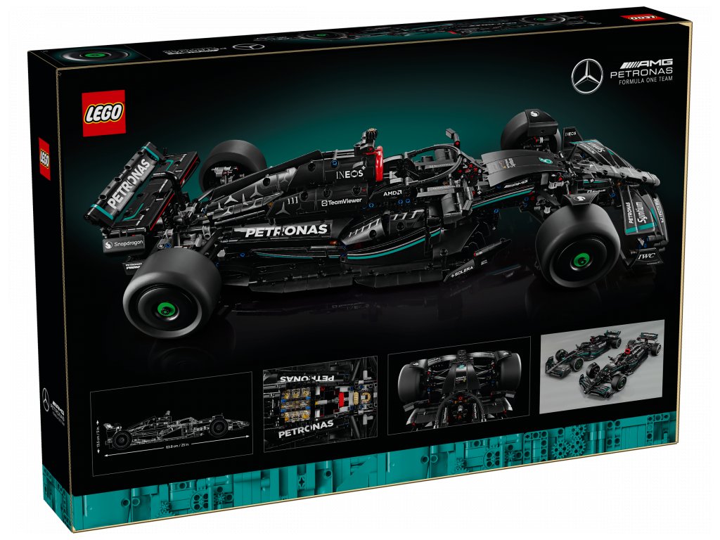 Řízení modelu lze ovládat volantem nebo knoflíkem na horní straně vozidla. Odejměte kryt motoru a prohlédněte si diferenciál a šestiválcový motor s pohyblivými písty. Stavebnice obsahuje spoustu propracovaných prvků, včetně otevíracího křídla inspirovaného systémem DRS. Tento model Mercedes F1 představuje skvělý dárek pro fanoušky závodění, kteří milují parádní stavebnice LEGO.
