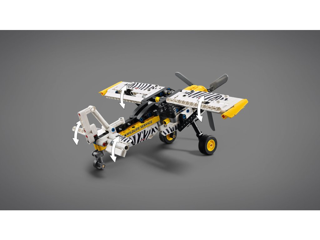 - Design s potiskem zebry – Tato stavebnice LEGO® letadla má stylový design zebry, který odráží roli, kterou letadla do vzdálených oblastí hrají při ochraně přírody