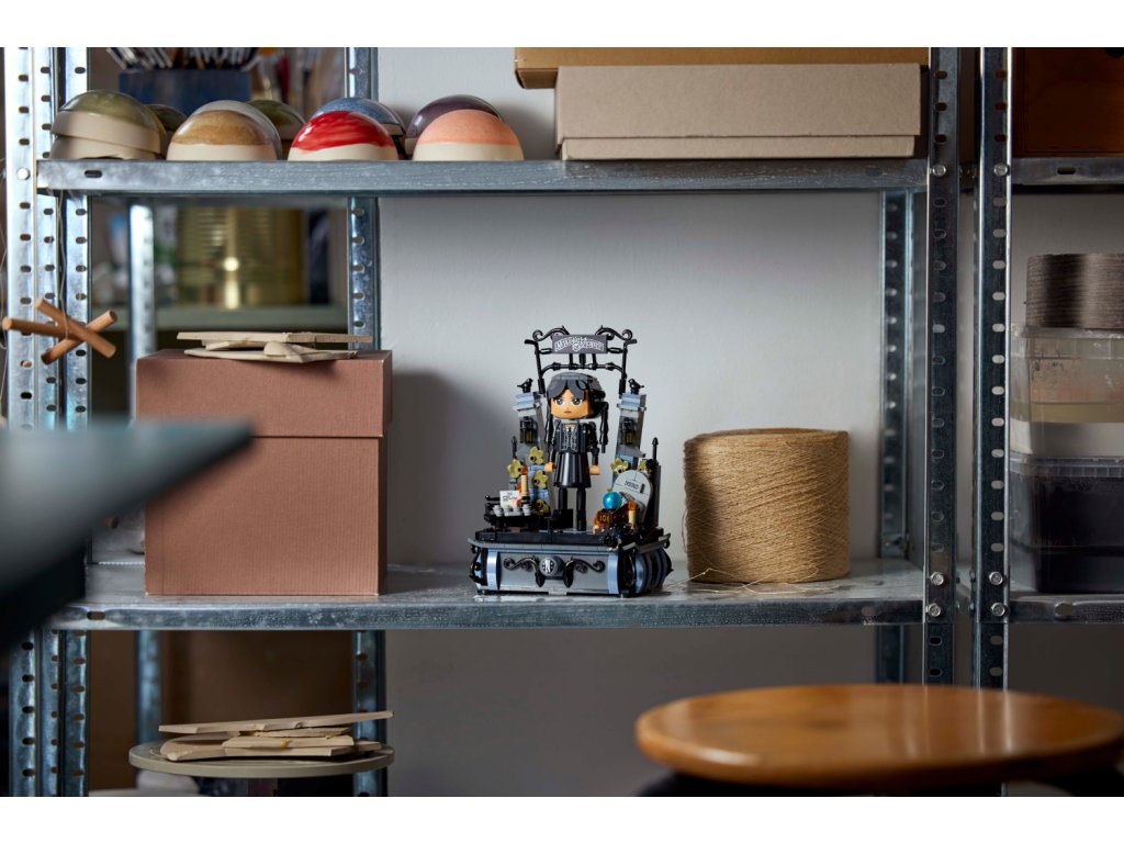 - Sběratelská stavebnice Wednesday – Sestavitelný, přizpůsobitelný pohyblivý model postavy, který byl navržen pro hraní a vystavování se spoustou známých předmětů z oblíbeného televizního seriálu