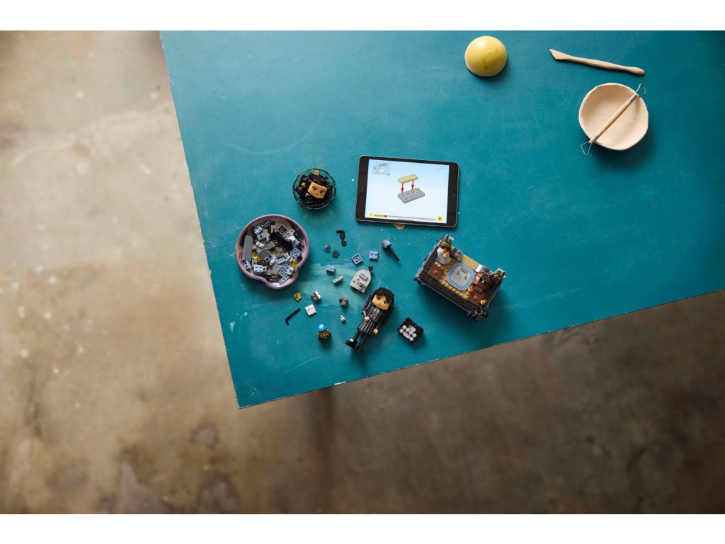 Digitální verzi návodu na stavění najdete v aplikaci LEGO Builder. Na zadní straně základny podstavce na vystavení najdete samolepku s QR kódem, kterou lze naskenovat pro snadný přístup k digitálnímu návodu na přestavení nebo změně oblečení Wednesday. Aplikace umožňuje dětem přibližovat a otáčet modely ve 3D a spoustu dalšího.