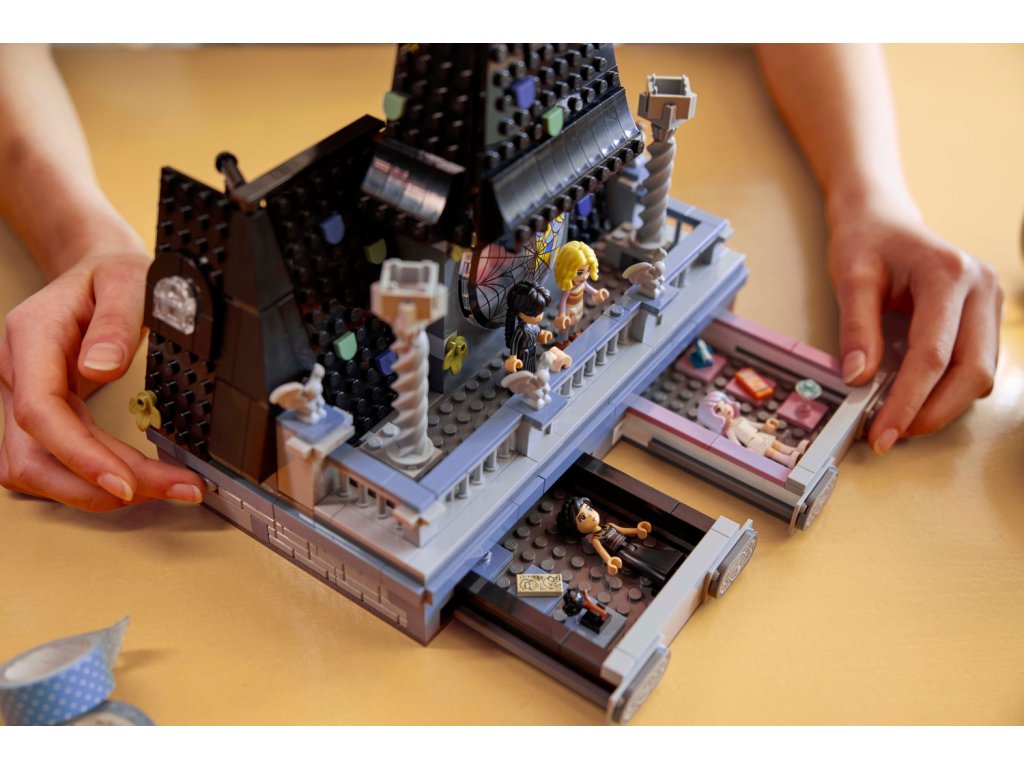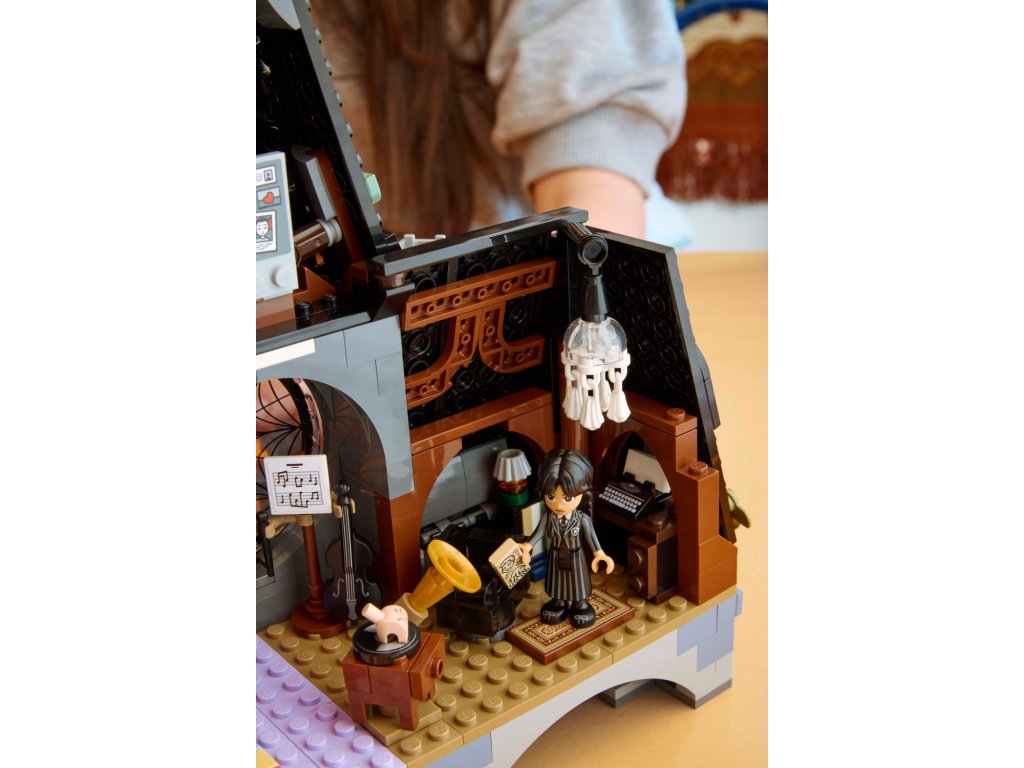 - Stavebnice akademie Nevermore – Model se skládá ze sestavitelného pokoje na koleji s pavučinovým oknem, které lze otevřít, podstavce s tlačítky, kterými se otevírají tajné zásuvky, a balkonu se 4 chrliči