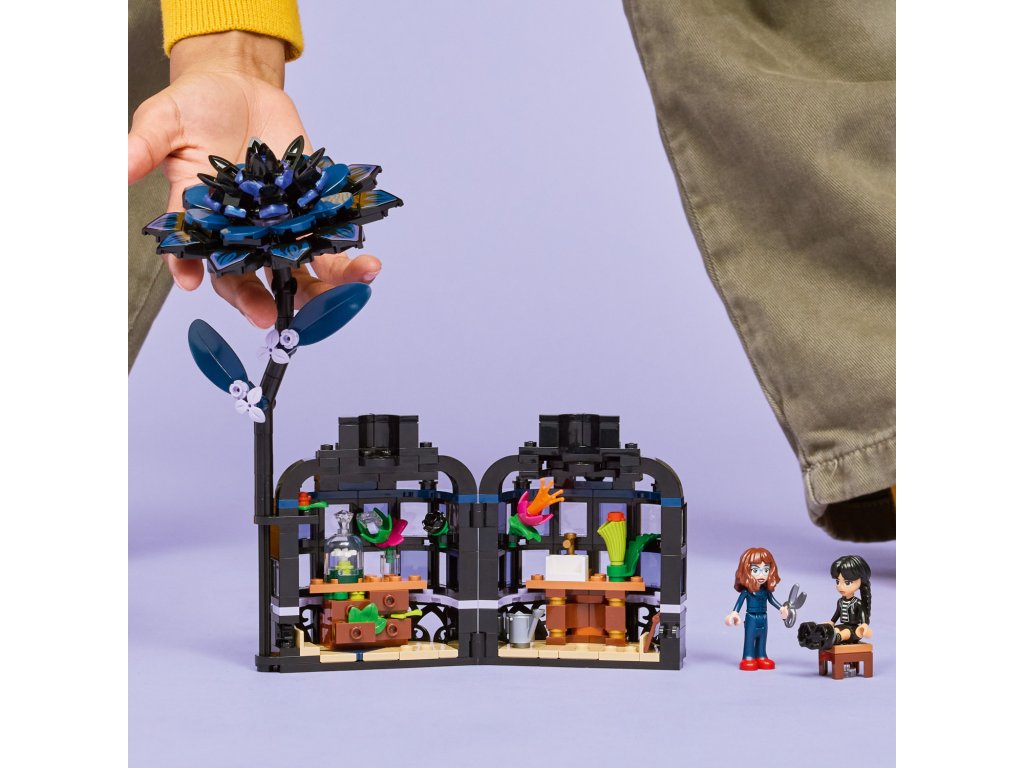 - Halloweenská hračka s Wednesday Addamsovou – Nadchněte milovníky designu a stavění z kostek LEGO® od 9 let stavebnicí Černá jiřina, která obsahuje vázu, květinu a další prvky