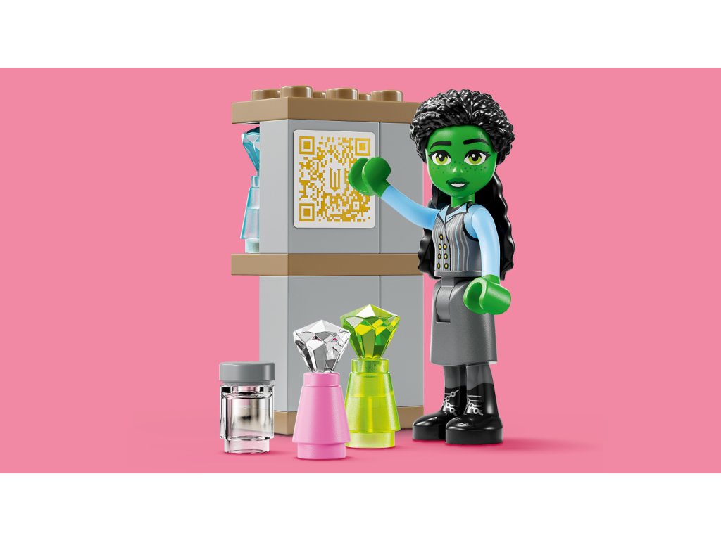 - Herní zážitek – Fanoušci budovu přizpůsobí svým představám pomocí dekorativních prvků, ozdobí Glindiny vlasy doplňky a odhalí další jedinečný obsah LEGO® Wicked naskenováním skrytého QR kódu