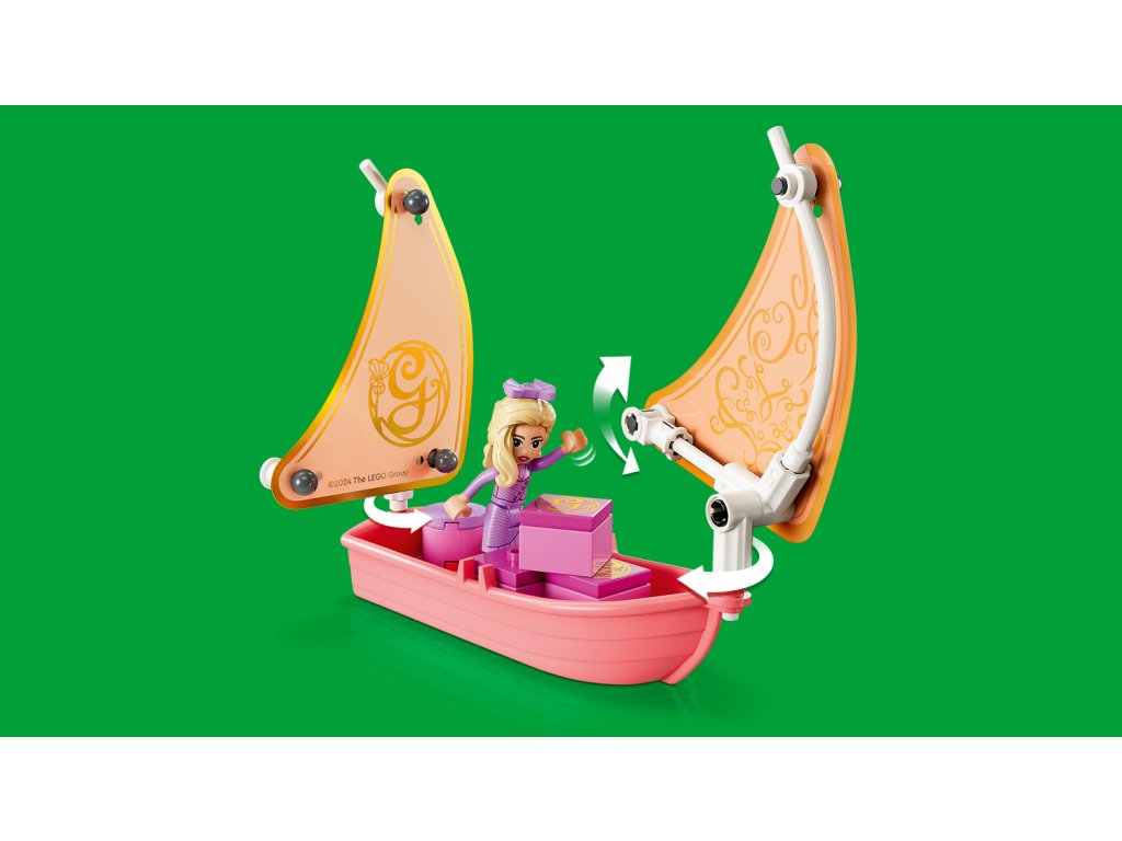 Fanoušci se vydají na dobrodružství ve světě LEGO® Wicked. Glinda připluje na Shiz univerzitu na své plachetnici se sklopnou plachtou. Pyšní se krásným růžovým odstínem, stejně jako ve filmu. Stavebnice představuje skvělý dárek a je inspirovaná filmem Wicked (Čarodějka) a děti si s ní připomenou příběhy o přátelství minipanenek Glindy, Elphaby a Nessarose.