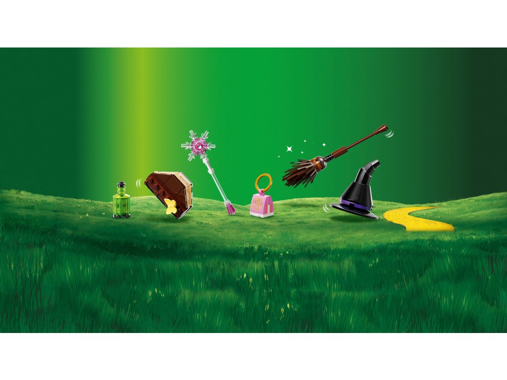 Tato dobrodružná stavebnice LEGO přináší hodiny neomezeného hraní, při kterém si fanoušci připomenou scénu z filmu Wicked (Čarodějka) nebo vymyslí vlastní příběhy. Děti mohou pohybovat rukama a hlavami postav za doprovodu slavného hitu „Defying Gravity“ z filmu, který si poslechnou po naskenování skrytého QR kódu pomocí svého zařízení.