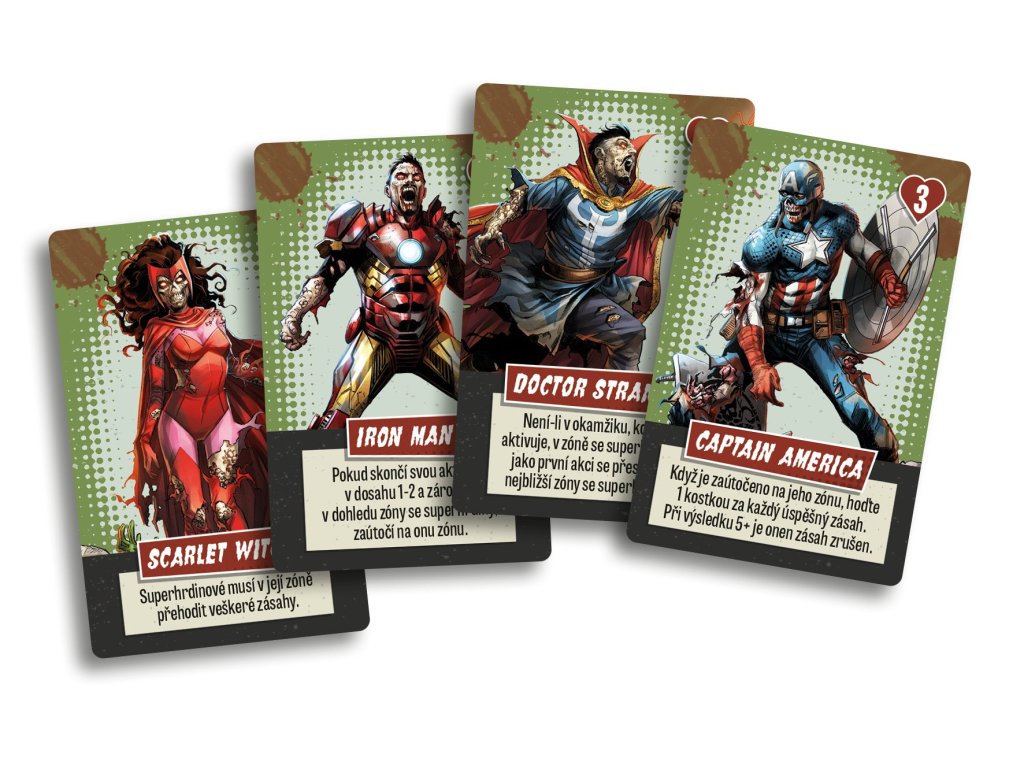 MARVEL ZOMBIES: ODBOJ SUPERHRDINŮ HRA Z EDICE ZOMBICIDE je kooperativní hrou, kde 1 až 4 hráči ovládají poslední z přeživších superhrdinů čelících svým zombifikovaným bývalým kolegům a hordám zombií ovládaným samotnou hrou. Cílem je splnit cíle misí, porazit nepřátele a zachraňovat ohrožené pomocníky. Porážením zombií budete získávat zkušenosti, které potřebujete k tomu, abyste se stali ještě mocnějšími hrdiny. Ale čím jste silnější, tím více zombií se zjeví a bude vás chtít sežrat! Pouze při důkladné spolupráci a maximálním nasazení svých schopností mohou superhrdinové doufat, že se jim podaří ukončit zombie apokalypsu!