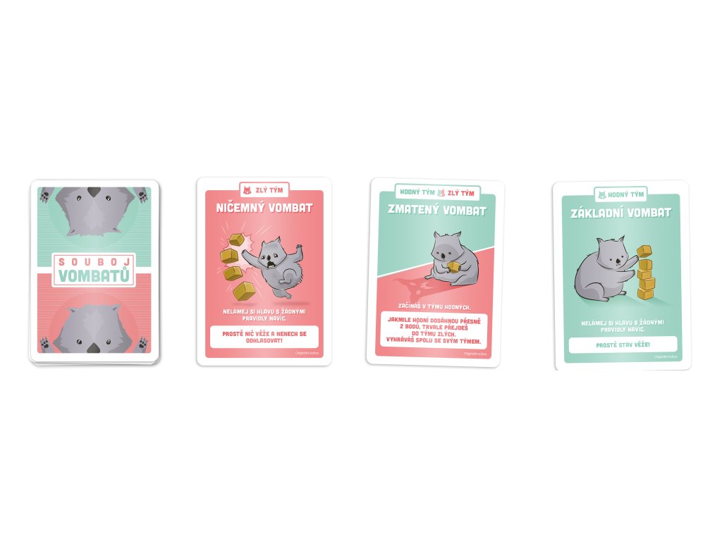 Přichází totální vombatí souboj! Buďte součástí vombatího týmu, kterému se v průběhu několika kol podaří jako prvnímu získat 3 body buď za stavění, nebo boření třech vombatích věží. Dejte však pozor, aby vás ostatní neodhlasovali ještě před koncem hry!Jak to funguje?
