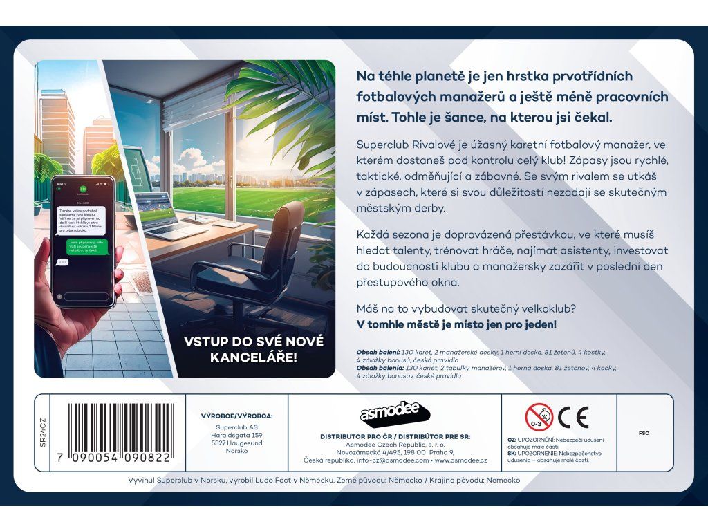 Superclub Rivalové je strategická karetní hra pro dva hráče, která vás postaví do role fotbalového manažera. Vaším úkolem je vybudovat silný klub, správně nastavit taktiku a porazit svého městského rivala v důležitých zápasech.